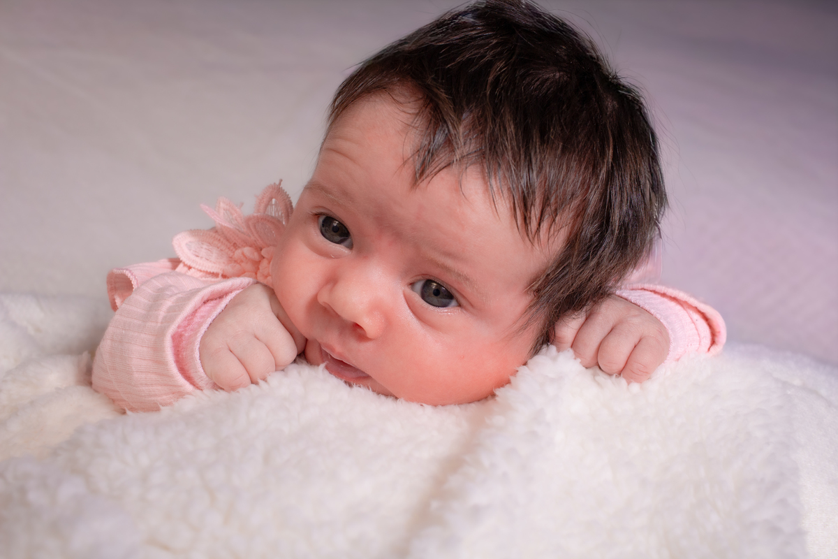 Uma nenê cabeludinha cheia de personalidade