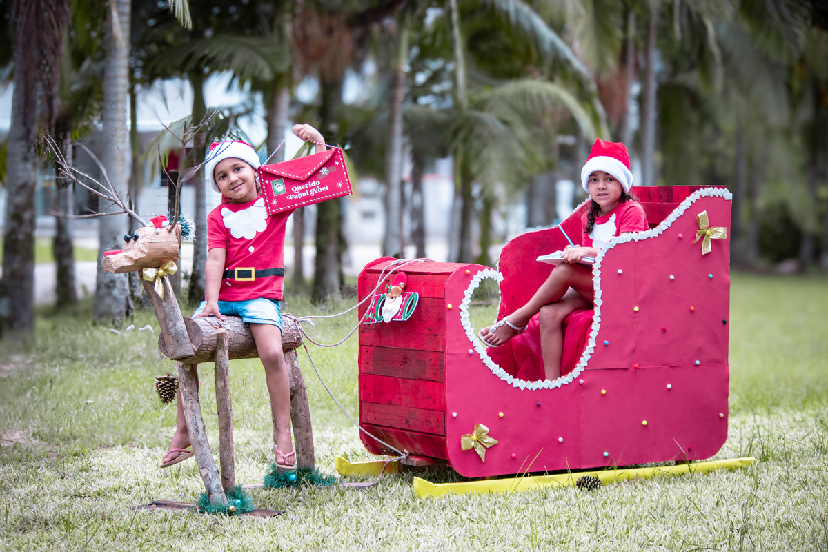 Nesse ensaio feito na casa deles,estava tudo preparado pelos pais corujas Andrew e Elisangela para ser um Natal inesquecível,com direito a trenó ,Renas,casa toda enfeitada,arvore de natal grande,tudo para encantar as pequenas.