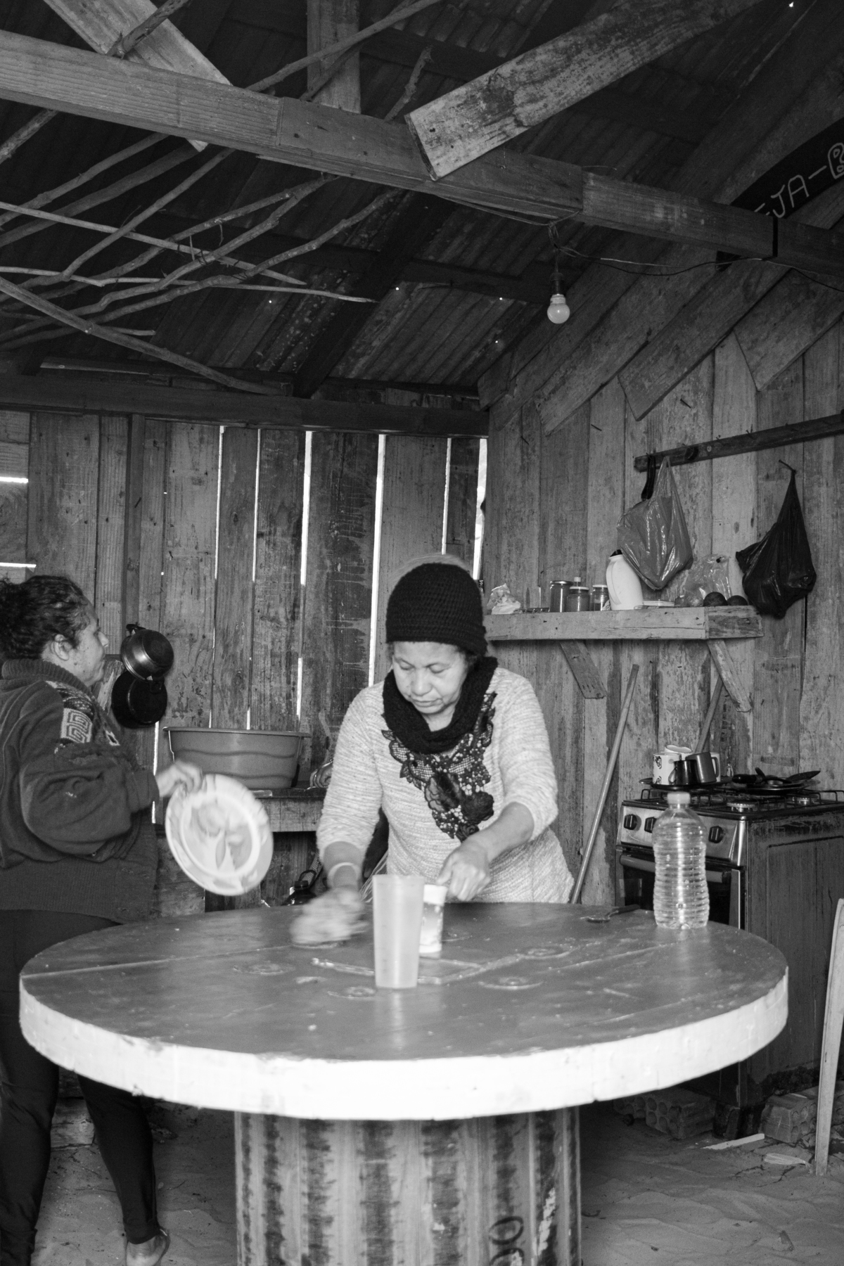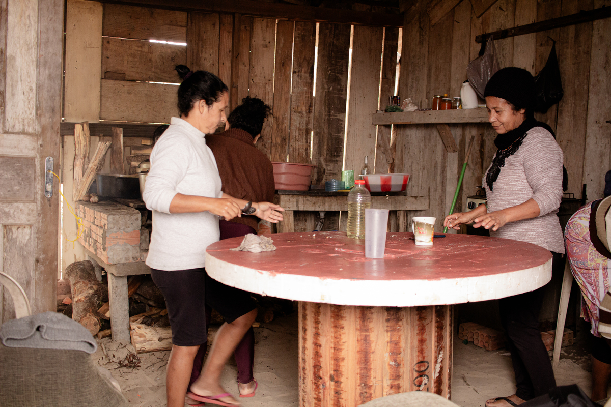 peixes recolhidos e contados,redes voltam para as canoas para novavemte poderem sair.As mulheres cuidam da comida tambem,grandes mutirões saõ feitos para que todos os anos a Tainha chegue á mesa da população e tambem para a grande festa que é realizada na cidades no Bairro Pontal.